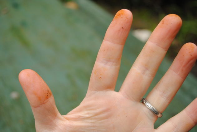 See how my fingers are stained from handling them? I recommend using gloves when breaking this mushroom up for the dye. Unless you like orange fingers.