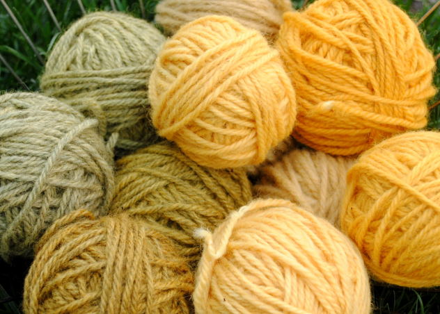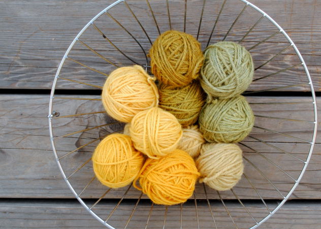 While our first skeins of white yarn were a saturated yellow, the last few skeins turned the expected pastel yellow.