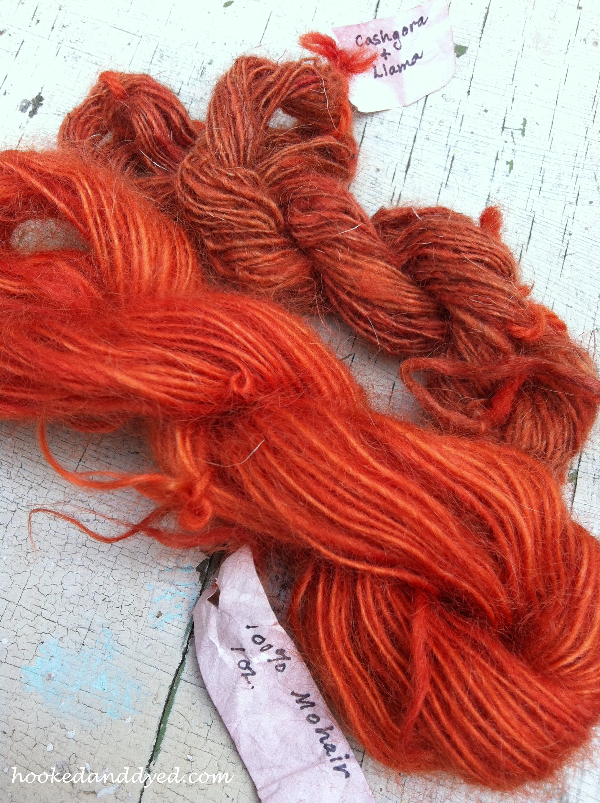Except now, six months later, I can’t remember what type of fiber (Llama? Alpaca? Camel?) we added to which pot of mushrooms. I can’t remember why some skeins are red and others are pink. And where did that apricot color come from anyway?